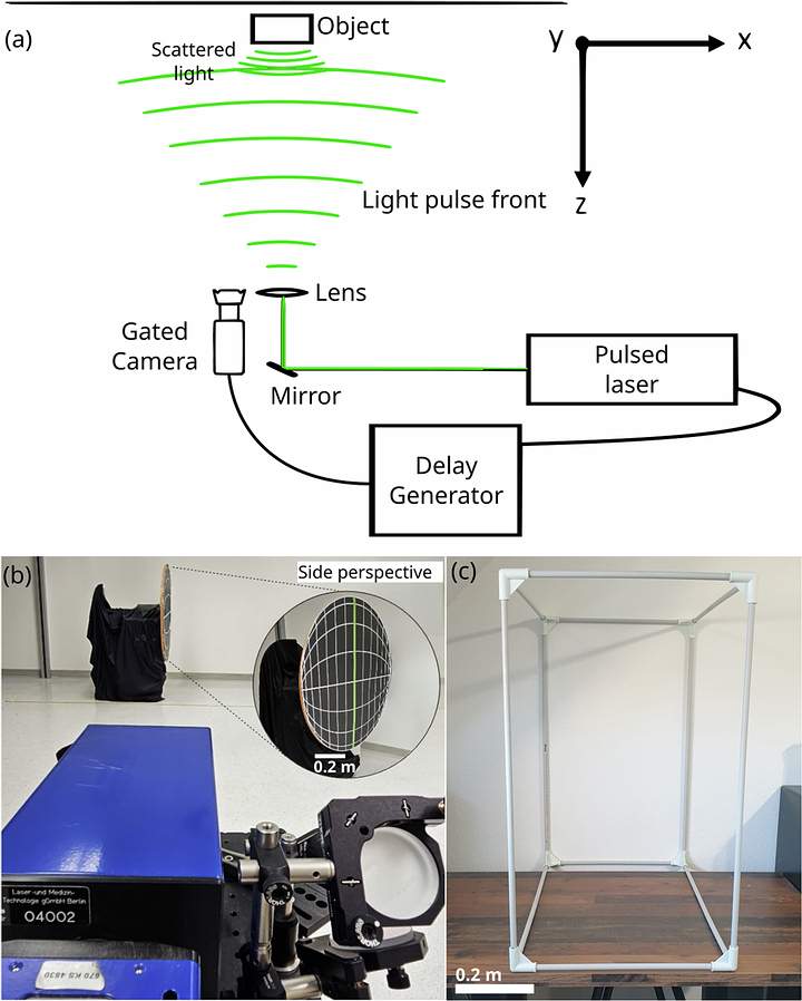 El método consiste en «coser» muchas «rebanadas» delgadas de luz reflejada. El equipo fotografió el objeto en múltiples instantes y luego combinó las áreas iluminadas por el láser en el momento preciso en que la luz habría sido emitida si c fuera de solo 2 m/s. El resultado es una sola imagen fija que hace visible el efecto Terrell-Penrose.