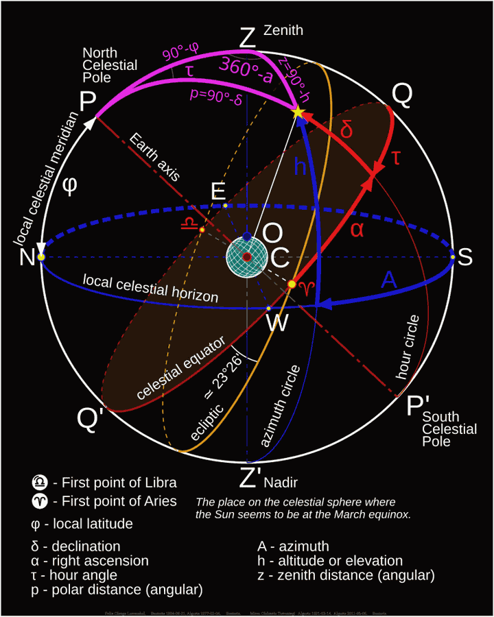 Esfera Celestial, mostrando el Polo Norte Celeste. Crédito: Jon Peli Oleaga (CCBYSA 4.0).