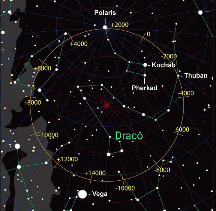 Este ciclo celestial no es estático. La precesión de los equinoccios, un ciclo de 26.000 años, cambia lentamente la estrella que marca el polo. Antes de los Guardianes, alrededor del 2700 a.C. (la era de las pirámides y de las grandes culturas mesopotámicas), la estrella polar era Thuban (α Draconis), una estrella de la propia constelación de la serpiente. Cada era estelar inspiró su propia mitología.