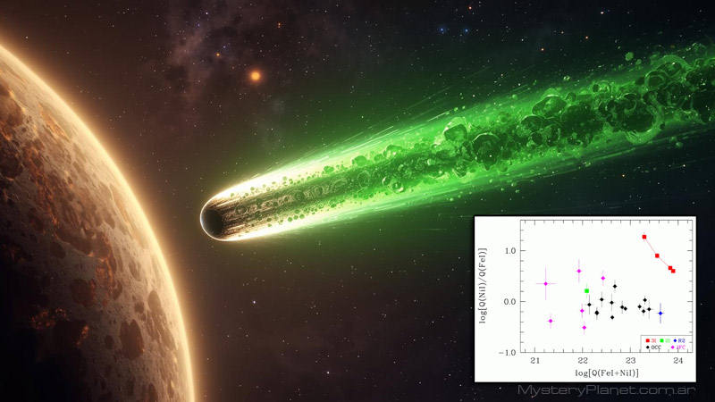 Los datos, obtenidos por el espectrógrafo UVES del Very Large Telescope en Chile, indican una inusual abundancia de átomos de níquel y hierro en el gas que rodea al cometa. El hallazgo es particularmente sorprendente porque la temperatura superficial de los cometas es demasiado baja para permitir que minerales refractarios que contienen estos metales se sublimen (pasen de estado sólido a gaseoso).
