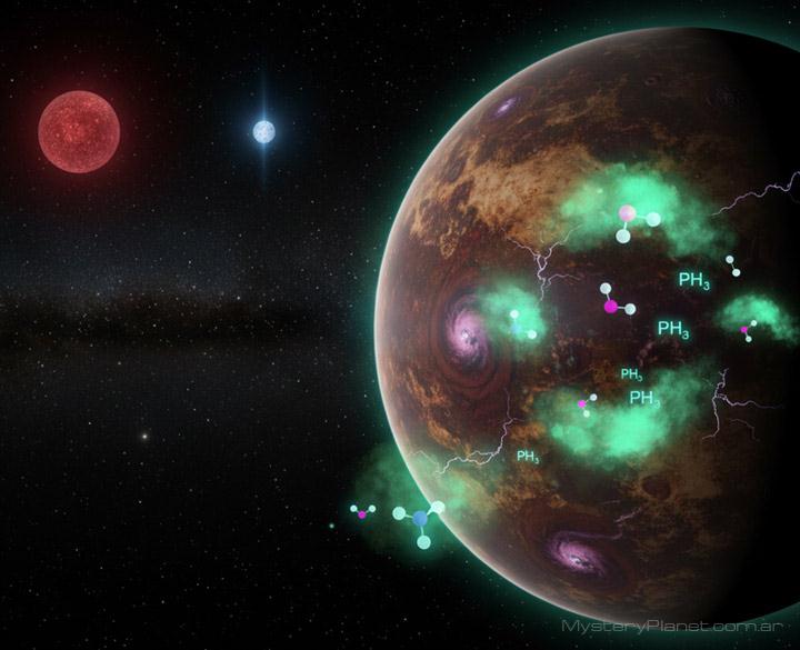 El fósforo es uno de los seis elementos químicos esenciales para la vida en la Tierra. Cuando se combina con hidrógeno, forma la molécula de fosfina (PH₃), un gas explosivo y altamente tóxico. Aunque presente en las atmósferas de gigantes gaseosos como Júpiter y Saturno, la fosfina ha sido considerada durante mucho tiempo una posible biofirma de vida anaeróbica, ya que en planetas rocosos como el nuestro, se produce principalmente por la descomposición de materia orgánica.